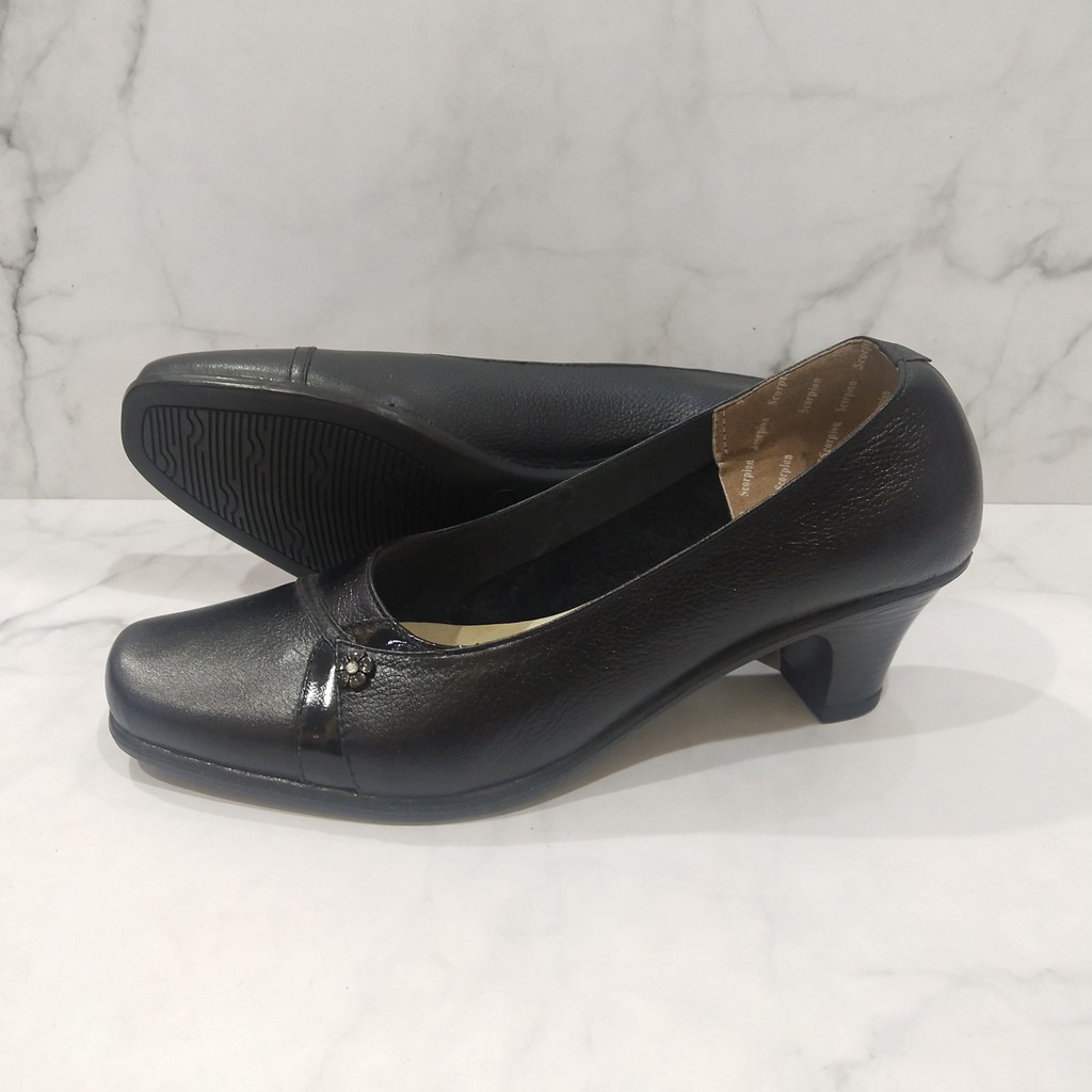Bahan : KulitHeel : 5cmSol : PUColour : HitamSize : 36-40Size chart 36 : 23,3cm 37 : 23,8cm 38 : 24,3cm 39 : 24,8cm 40 : 25,3cmSepatu kulit wanita menjadi sebuah trend fashion yang wajib diikuti dan menjadi kebanggan tersendiri bagi kalangan wanita. Baik sepatu kulit untuk kerja, kuliah, santai atau digunakan saat menghadiri undangan pesta. Kami menjamin 100% bahan yang kami gunakan adalah kulit sapi asli, jika anda menemukan produk kami menggunakan kulit imitasi, kami garansi uang anda kami kembalikan 2x lipat dari harga yang anda
